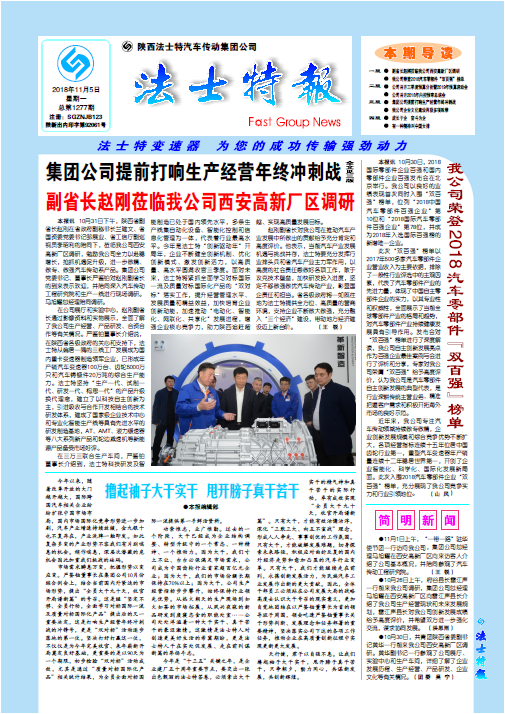 點擊量:3372●11月12日下午,集團公司整改事項匯報會在西安高新廠區召開,陜西省國資委監事會主席李振東聽取了集團公司黨委書記、董事長嚴鑒鉑關于公司整改落實情況及近期工作開展情況的匯